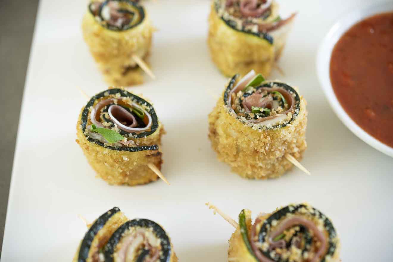 Zucchini Baked, Prosciutto and Cheese Roll-Ups